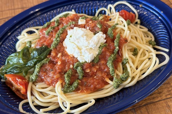 メニュー開発者のおすすめの食べ方は、トッピングされているリコッタチーズを、徐々にパスタに絡める食べ方なのだとか。