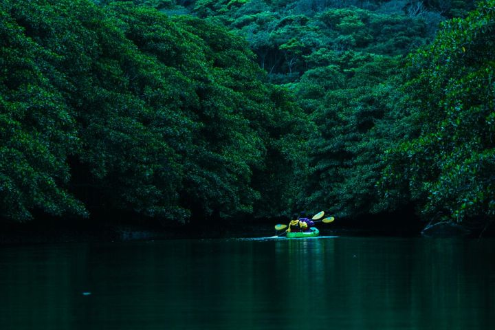 静寂に包まれたマングローブ林が広がる川をカヤックで進みます。パドルを漕ぎながら、多種多様な生き物の気配と西表島の奥深さを感じることができます。