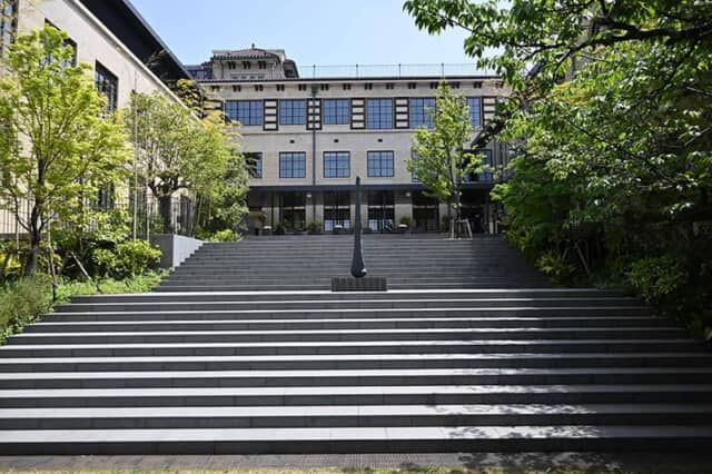 平安時代から京都の東西南北を守る四神が北の玄武、東の青龍、南の朱雀、西の白虎とされ、東山に位置することからザ・ホテル青龍と名付けられました。旧清水小学校は東山の傾斜地にあるため中庭に大階段を設けていて、今も建物を象徴する存在のひとつになっています。