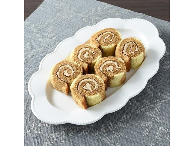 2色のスポンジ生地にモカクリームを巻き込んだ、ミニロールケーキ6個入りです。