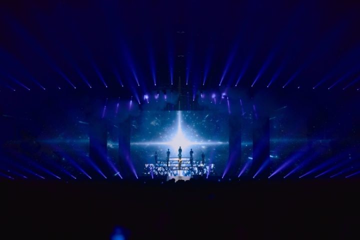 会場が暗転すると、モニターに一筋の光が走り、期待を煽るようにVCRがスタート。