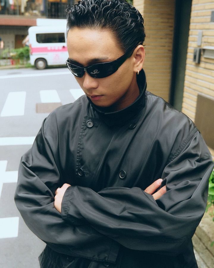 3. 【スナップ】トーンと質感の異なるブラックでまとめて。どこか近未来感さえ漂わせるモードなスタイリング