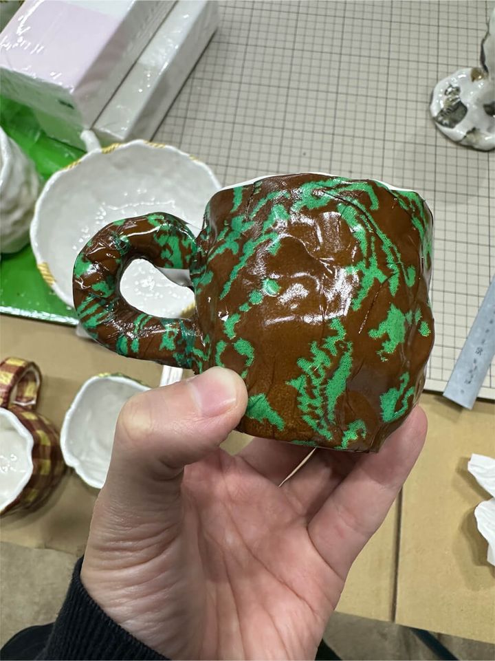 一点ものとして企画・制作される食器やフラワーベース、オブジェなどの作品は、手の跡が残る独特の存在感と、どこか大量生産品を思わせるユーモアや匿名性を特徴とする。