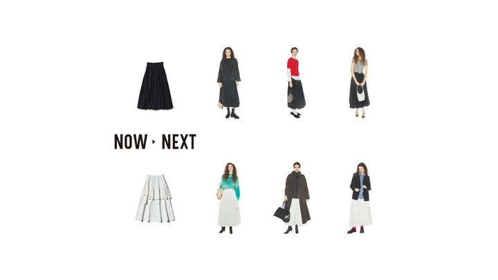 気温に応じたトップスとなじみよく、長期間の活躍が見込めるスカートを選別。これからよく着る服と波長が合い、重ねたときも膨張感なく装える素材と形に着目。たとえ無地Tシャツとでも地味にならず、コートが重なっても埋もれない、適度に主張する1枚の実力を着まわしながら検証。