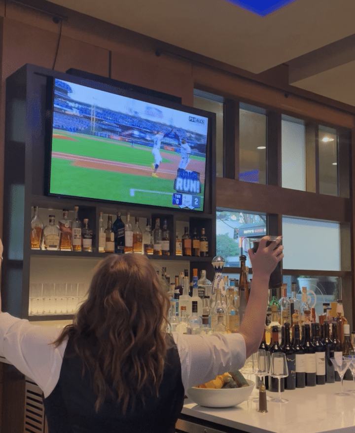 シアトルのスポーツバーにて。バーテンダーのお姉さん、仕事そっちのけで試合を楽しんでました!