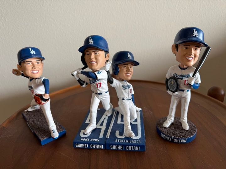 2025年は大谷翔平選手のボブルヘッドデー(ボブルヘッド人形が配られる日)が4日間ありました。L.A.在住の友人、マリちゃんは全日数観戦し、4体ともコンプリート!