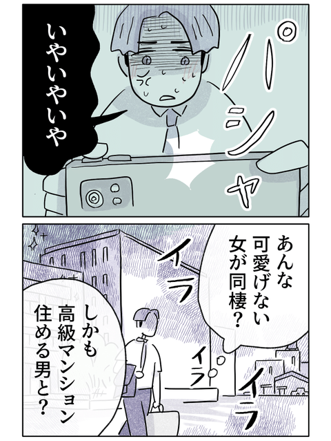 気になってあとをつけてみると、どうやら彼氏と同棲しているらしい…。しかも、その住まいは高級マンションでした。