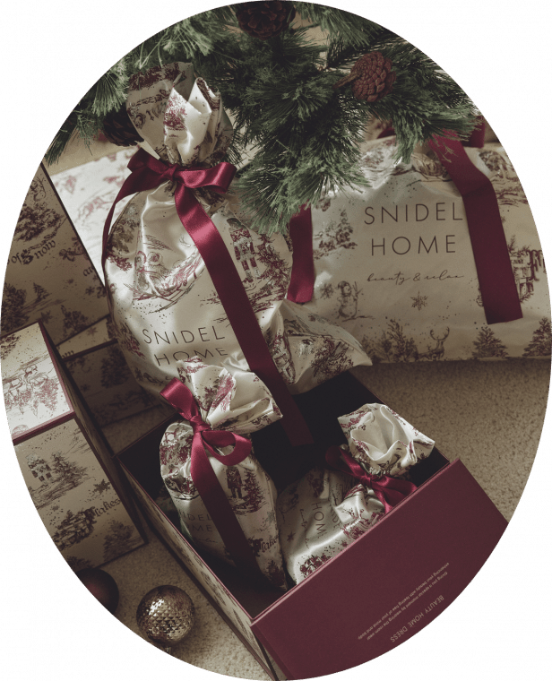 2025年はソリに乗ったサンタクロースやトナカイなど、ホリデーシーズンにぴったりなトワル・ド・ジュイ柄が心ときめく特別なデザイン。大切な人に贈りたいを叶える、ドラマティックなギフトラッピングは必見。同柄のルームウェアは裏起毛した優しい肌触りと、美しい光沢感が人気の「Warm Satin(ウォームサテン)」を使用。贈り物にぴったりのラインナップです。