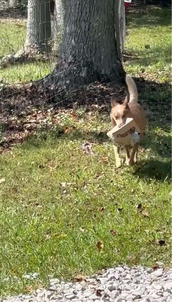 2. 荷物を取りに行ってくれ・・た?口に荷物をくわえて運んできた愛犬が、最後は雑にポイッ!【アメリカ・動画】
