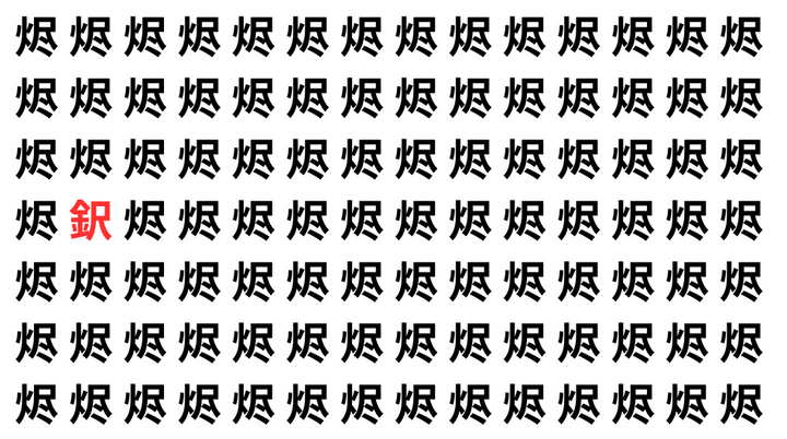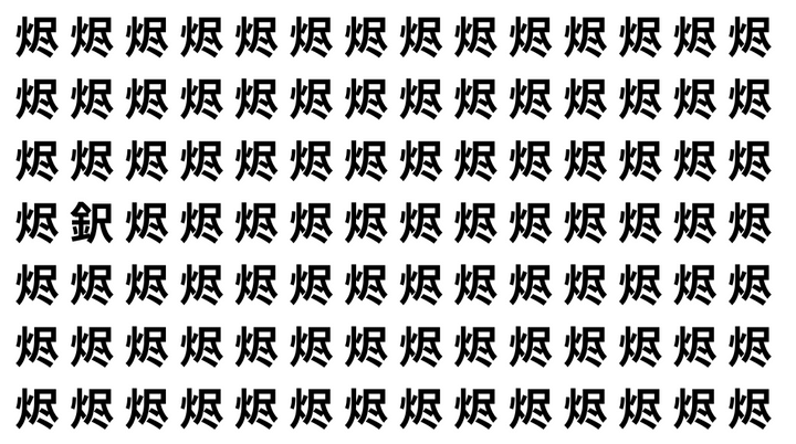 たくさんの「烬」の中に、よく似た別の漢字が1文字だけ隠れています。
