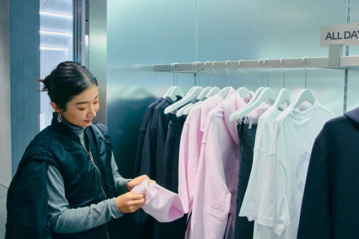 フロアで最初に気になったのは光沢感が素敵なボンバージャケット。立体的なシルエットがおしゃれ!このほかにも、高機能なアイテム、デイリー使いしたくなるおしゃれなアパレルがそろっていました。