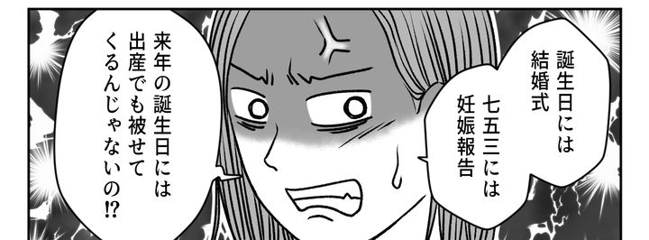 リリの誕生日当日に結婚式を被せてきた義弟夫婦。そのときから苦手になり距離を置いていましたが、今度は七五三のお祝いに参加したいと言うのです。しぶしぶOKしたところ、なんとその場で妊娠発表。エコー写真まで持ってきていたので報告する気満々です。