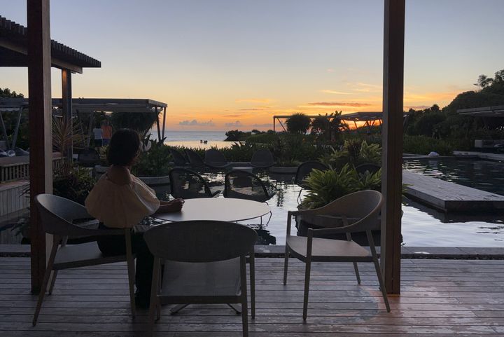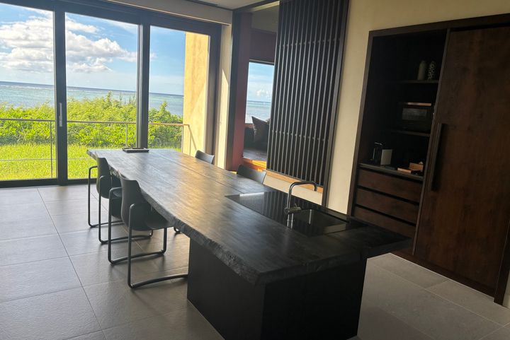 私たちが滞在したのは、海に抜ける土間ダイニングと寛ぎの床座リビングを設けた“フゥシ”という客室(93~94㎡)。窓からは視界いっぱいに広がる海とゆるやかに揺れる植物。室内にいても外の気配がそっと寄り添い、心が自然と深呼吸していくよう。