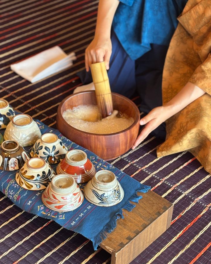 旅人の疲れを癒し、安全を願う想いが込められているという“ぶくぶく茶”をいただいて、ほっと一息。