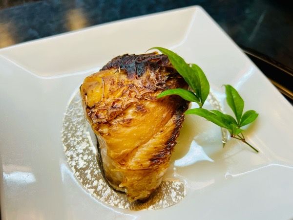 醤油・酒・みりんに漬け込まれた幽庵焼き。下味の染みたこの色が食欲をそそります。