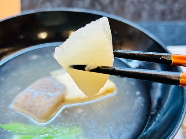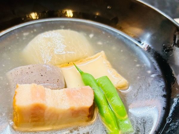 柔らかく煮込まれた大根、歯ごたえのあるインゲン。それぞれの食材に最適な食感を味わえるのも料理人の逸品ならではです。