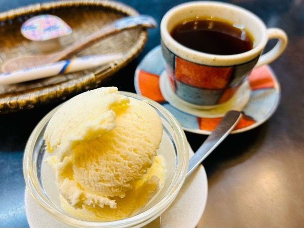 400円でこんなセットも付けられます。ハーフサイズの可愛いコーヒーと、しっかり濃厚バニラアイス。幸福度100%が120%に♪