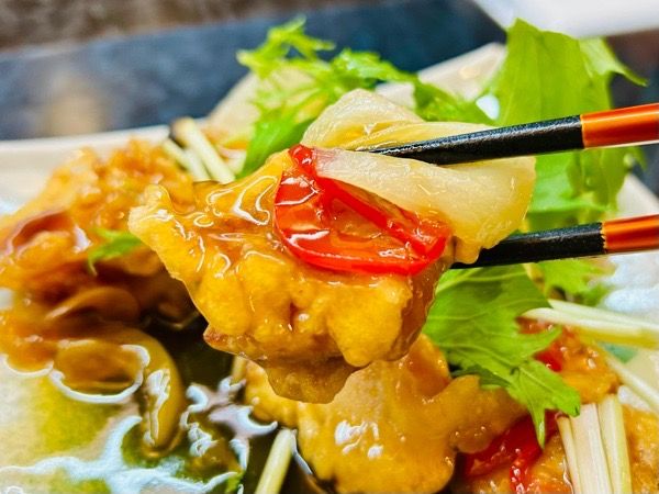 この日のメインは「鶏の唐揚げ 黒酢あんかけ」
