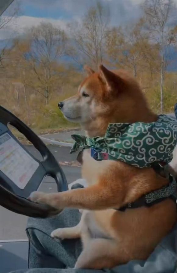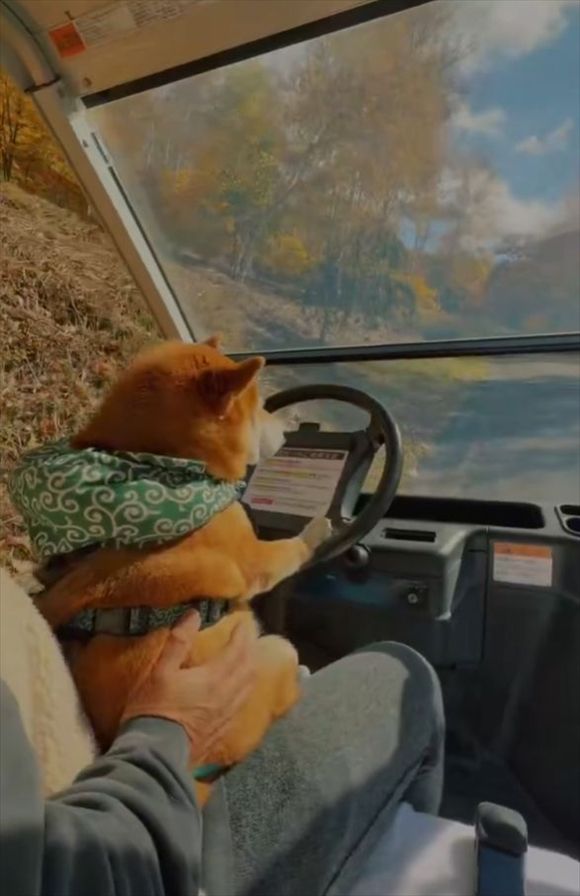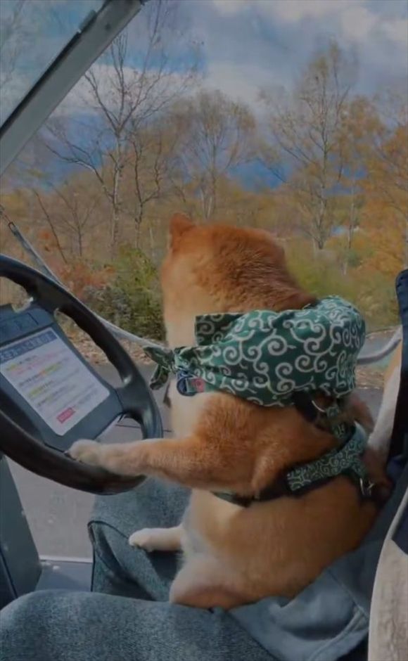 3. 柴犬が運転している!?自動運転カートのハンドルにおててを伸ばす姿に反響「プロのドライバーさん並みに優しい運転」「安全運転なんだね」