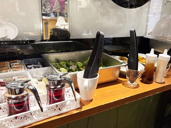 モーニングビュッフェは、90分制。入店とともにレジで料金を支払います。席に着いたら、ビュッフェへ。