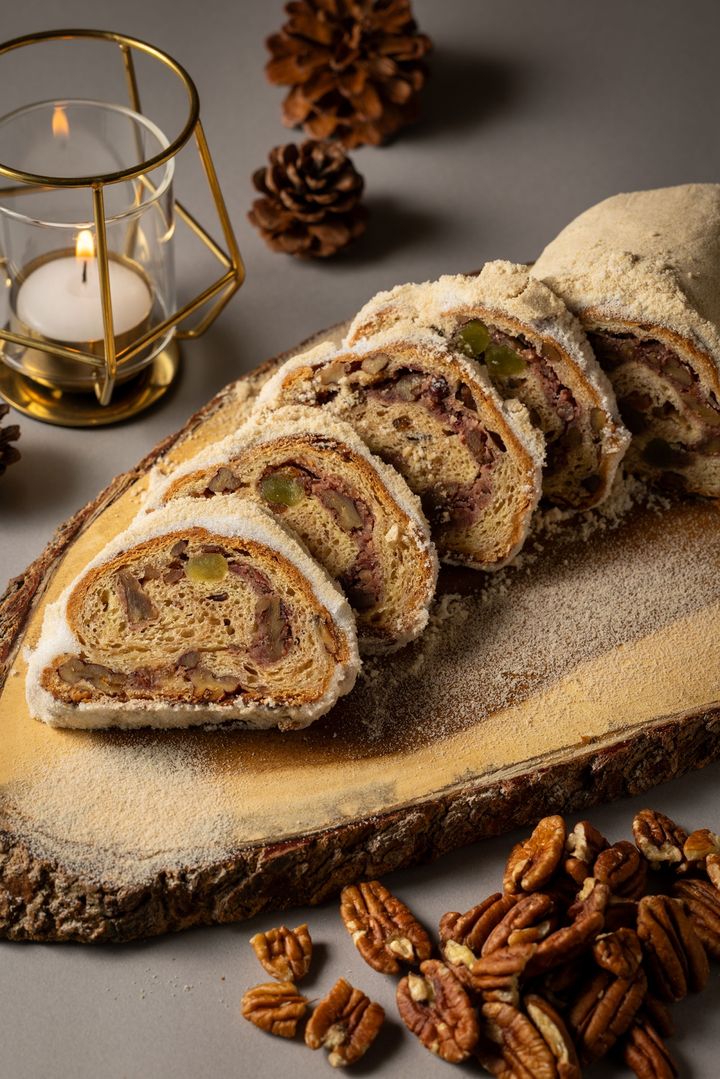 また、「ピーカンナッツ シュトーレン」は、第3回全国ピーカンナッツ・レシピコンテストで優勝したという実績のあるシュトーレン。餡子とピーカンナッツを包み込んだ意外な組み合わせが新鮮で、青豆の食感や柚子の香りがアクセントに。やさしい甘さとしっとり感が絶妙で、家族や友人とシェアしたくなる味わい。