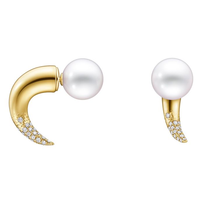 〈デインジャー ホーン〉イヤリング[K18YG×南洋真珠 白蝶×DIA]¥1,617,000(TASAKI)