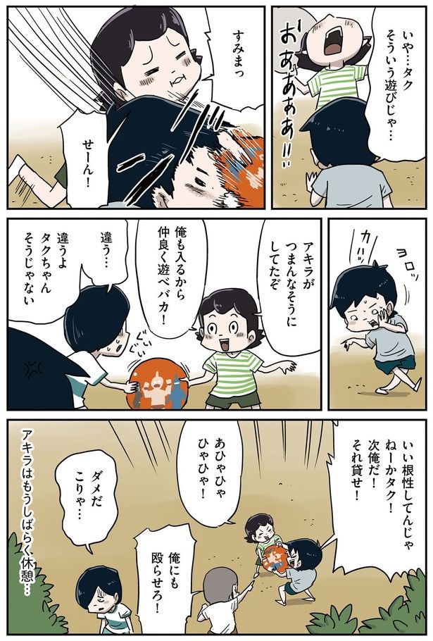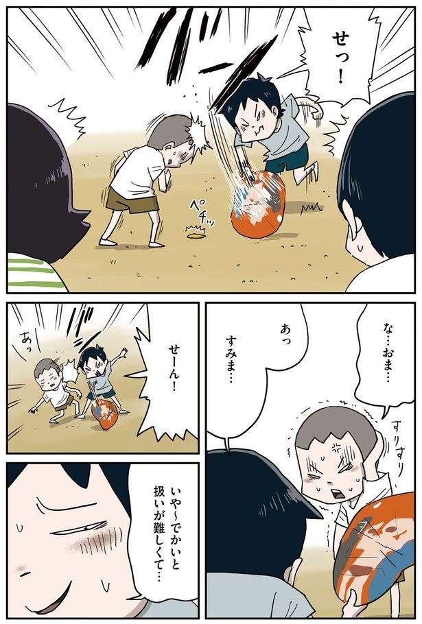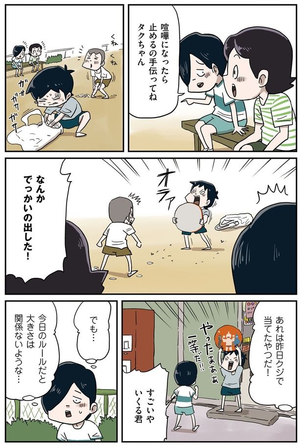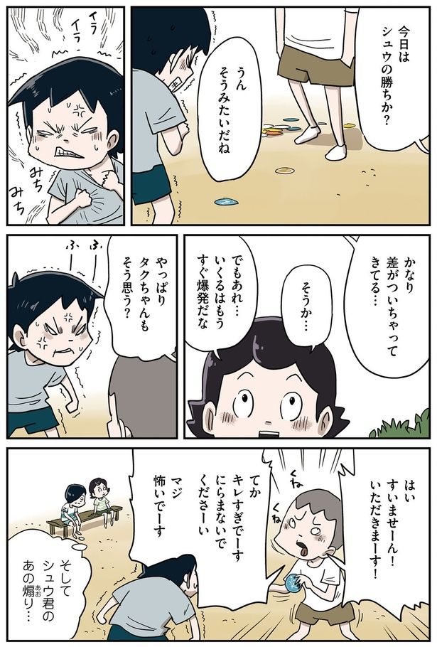 3. 「そうじゃない」イライラした友達がメンコで人を叩く様子を見て、遊び方を勘違いした男子/しなのんちのいくる 6㊴