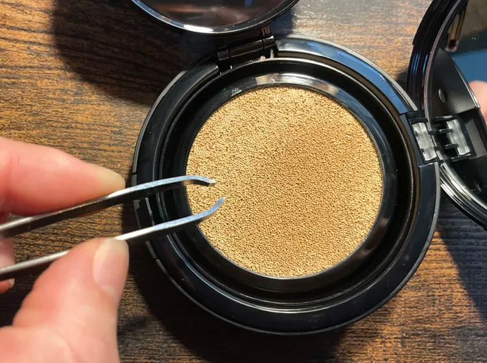 クッションファンデーションの特徴は、リキッドファンデーションが染み込んだスポンジ。
