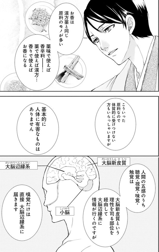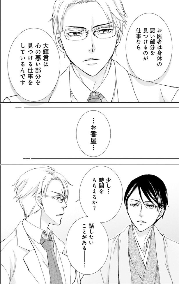 家族が病院を経営している瀬戸大輝は義務感で医師を目指していたが、二度目の医学部受験に失敗。これ以上、親に迷惑はかけられない…と絶望感にさいなまれていたとき、香老舗の若主人・栄薫に出会う。薫のお店に招かれた大輝は部屋に漂う香りに癒されてお香の魅力を知り、“お香のセラピストになって人を癒したい”という自分の夢を見つけるのだった。薫の元で香の道を学ぶ決意をした大輝は新たな人生を歩み出す――。京都を舞台に描かれる“お香”が紡ぐヒューマンストーリー『京の都の香の路』(全3巻)を好評につき再掲載でお届けします!