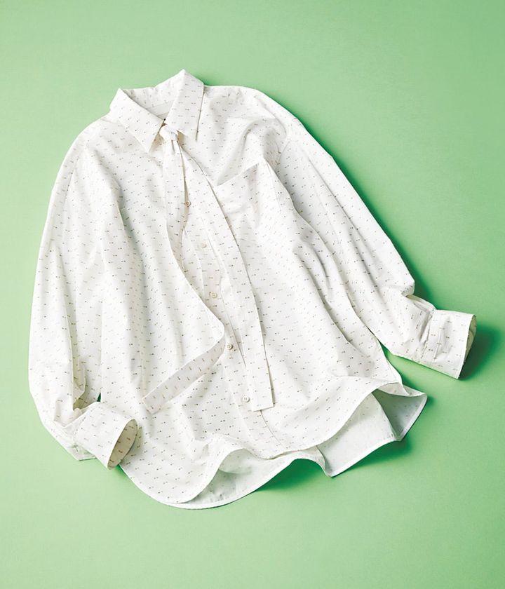 タイ付きシャツが大好物。中でもこれはタイの細さが秀逸です。ボーイッシュなチノパンに合わせて、カジュアルダウンして着たいです。