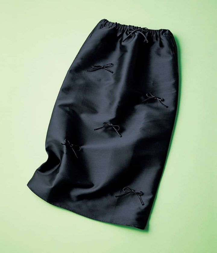 シルク風のハリのあるポリエステル。構築的シルエットで体型を拾いません。スカート(エレフ/ユナイテッドアローズ 六本木ヒルズ店)