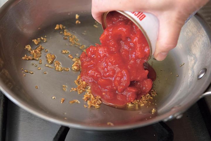 「さばのトマト煮にしょうゆ?」と、ミスマッチを疑うことなかれ。作ってみると見事に調和した一品に。ごはんにも合うし、残りをパスタソースにするのもおすすめです。