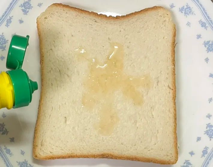 先ほどの星とは違い、大きめに描いて、1分ほどおいてトーストにレモン汁を染み込ませました。