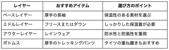 ●ポイント2:重ね着(レイヤリング)の基本を知る