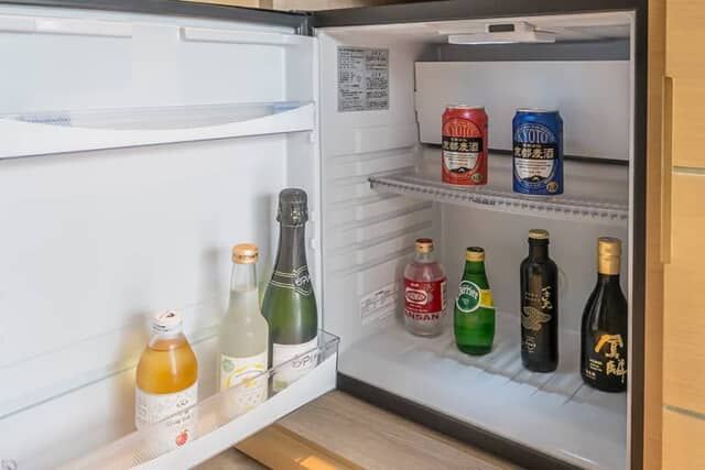 ソフトドリンクやワインのほかドン・ペリニヨンなど有料のドリンクが冷えています。