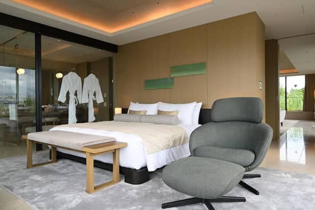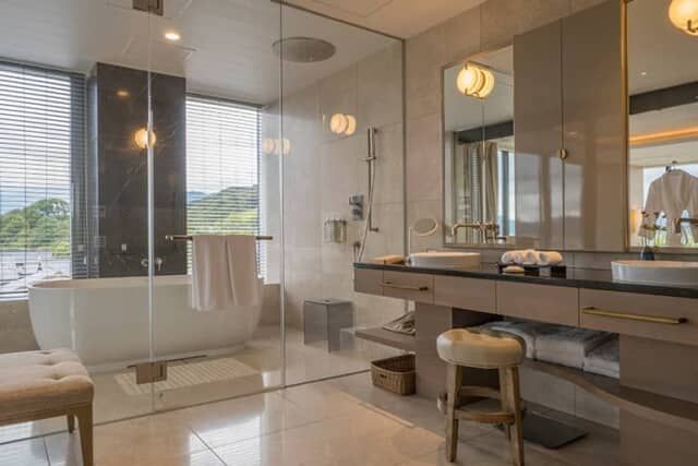 十分すぎるほどの広さがあるウェットエリア。ガラス張りのバスルームのほか、隣り合ったベッドルームともガラスで仕切られ開放感も十二分に得られます。