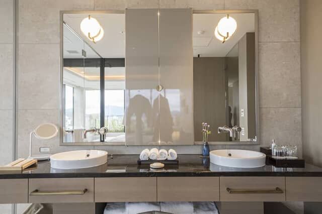 ▲使い勝手のいいダブルベイシンの洗面
