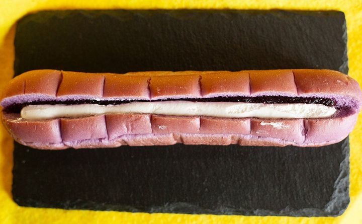 ブルーベリーをイメージしたという紫色の生地に、ブルーベリージャムとホイップをサンドしたという同商品。パッケージにも「茨城」と書いてありますが、茨城県産のブルーベリーを使用しているそうです。ちなみに、セブン-イレブンのウェブサイトを見ると、発売地域は「関東」のみとなっています。