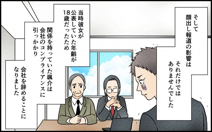 さらには自称10代との不適切な関係が会社のコンプライアンスに引っかかってしまい…退職することになったのです…。嘘つかれてただけなのに…なんでだよ…?