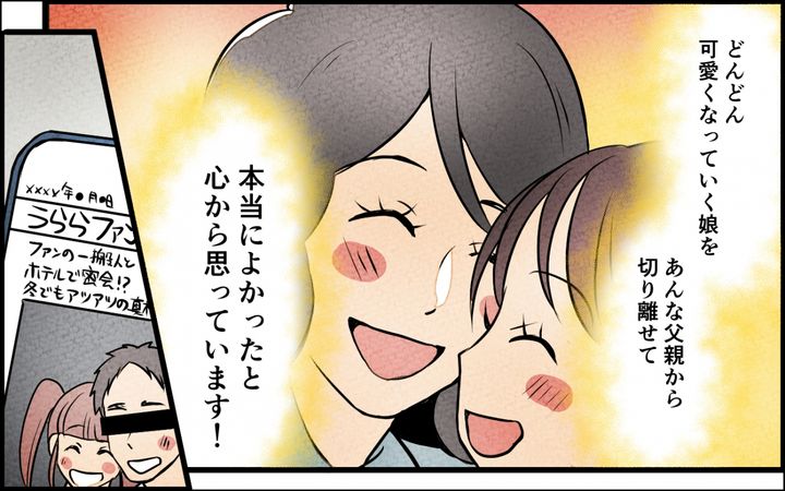 日に日に愛らしくなっていく娘。少し寂しがることもあり心が痛むこともありますが、あの父親が今もそばにいたらと思うと…ゾッとします。