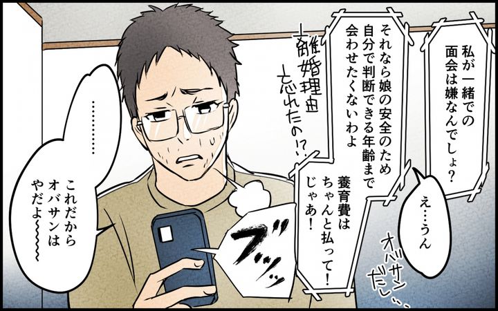 ■これまでのあらすじ わけのわからない持論で妻を裏切っていた夫に離婚を突きつけた妻。しかし、夫はオバサンになった妻のことは愛せないが娘はかわいいと駄々をこねる。娘を守るために親権を勝ち取った妻は、金輪際、夫に会うことはないと心に誓うのだった。