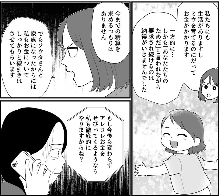 私も冷静に「これからはお金の線引きについてしっかりとする」と伝え、一方的な要求をのむ気はないと釘を刺しました。