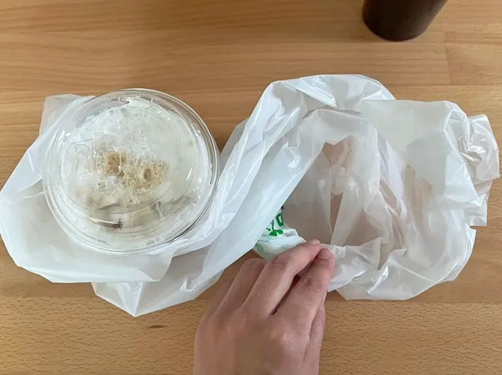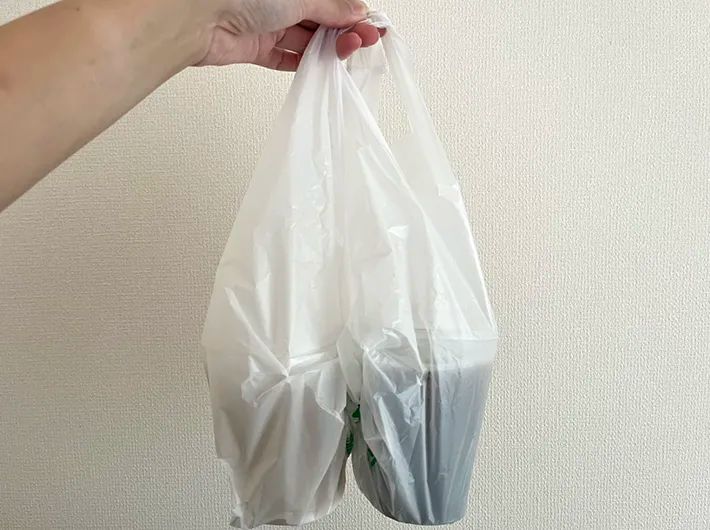 ビニール袋を用意する際は、ドリンクのサイズに合わせて、大きすぎないものを選ぶのがポイント。