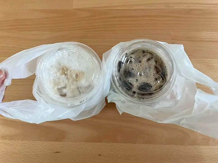 後は、中のコーヒーをこぼさないよう、ビニール袋の持ち手を慎重に持ち上げれば…。