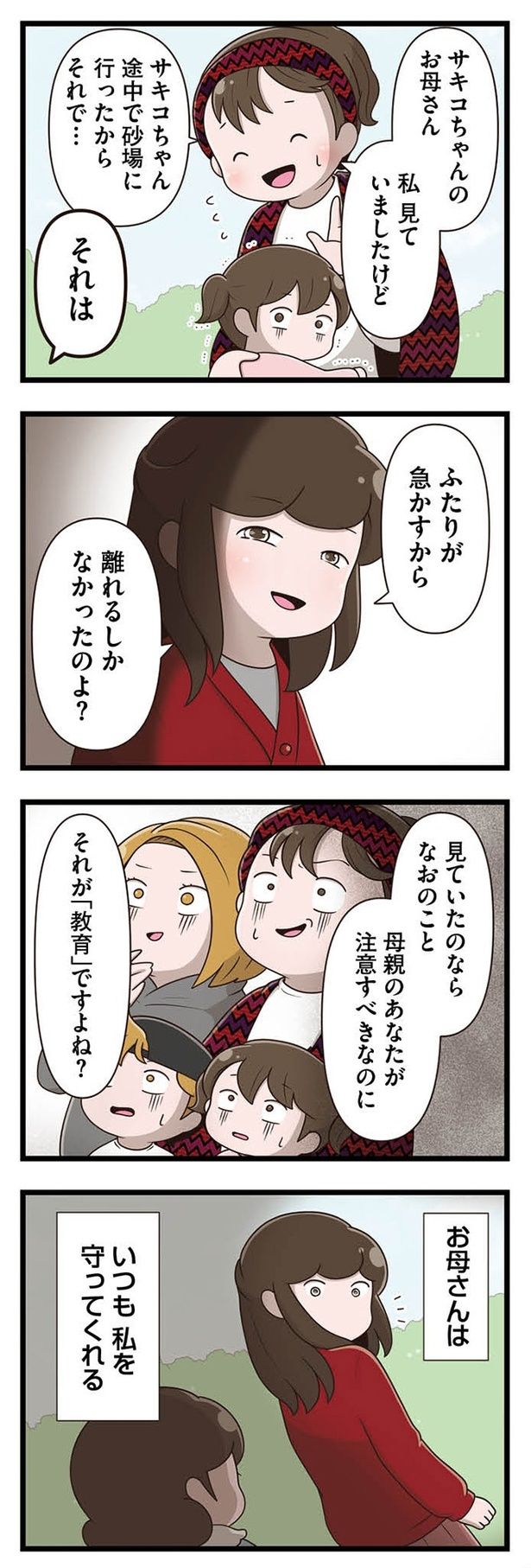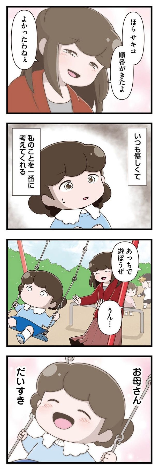 お母さんの言うとおりにすれば大丈夫。そう思っていた――。どんな時も私を肯定してくれて、守ってくれるのは“お母さん”だけ。我が子のためにとモンスターペアレントになった母親と、その支配から娘・サキコが解放されるまでを描くセミフィクション。彼女の家庭は、深刻な問題を抱えていました…。前作『家族全員でいじめと戦うということ。』で、主人公がいじめられる原因に繋がった、同級生・サキコの物語をお届けします。