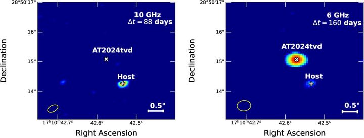 AT 2024tvd領域の電波画像。HOSTが銀河中心。/Credit: Sfaradi et al., The Astrophysical Journal Letters (2025)
