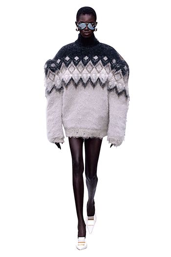(船戸さん) 「どこか懐かしさの残るダッドな柄ニットが、ACNEらしい極端なBIGサイズで登場。ともすれば野暮ったくなりがちなアイテムを、この思いきりのいいメリハリで一気にモードへ転換させているのがポイント。この大胆なシルエットこそが、今季のグレーを更新する鍵」