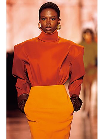 多彩に広がった、ヴィンテージライクな渋い色。中でも注目されたのがSAINT LAURENT。80年代を思わせるビッグショルダーをベースに、配色の広がりを見せた今季のコレクション。