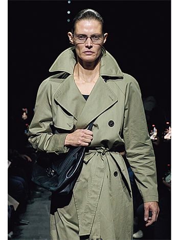 「えりをたてた着方だといっそうハンサムで素敵。実際にBALENCIAGAのルックに影響されて、数年前に購入した手持ちのカーキのコートを、久しぶりにクローゼットから引っ張り出してみました。ベージュのトレンチはコンサバ見えして苦手という人も、カーキならトライしやすいかも」