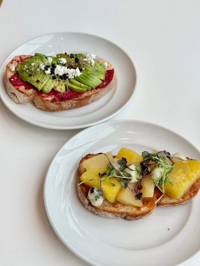 こちらのお店では6種類あり、トリュフスクランブル、生ハムとマスカルポーネ ルビーカシスのソース、アボカドとビーツのスマッシュ、プレーン(&ココナッツクリーム)に加え、季節のビーガンジェノベーゼと、サツマイモ甘露とリンゴ ゴルゴンゾーラのトラパネーゼが季節限定でラインナップ。 どの組み合わせも食べてみたい!
